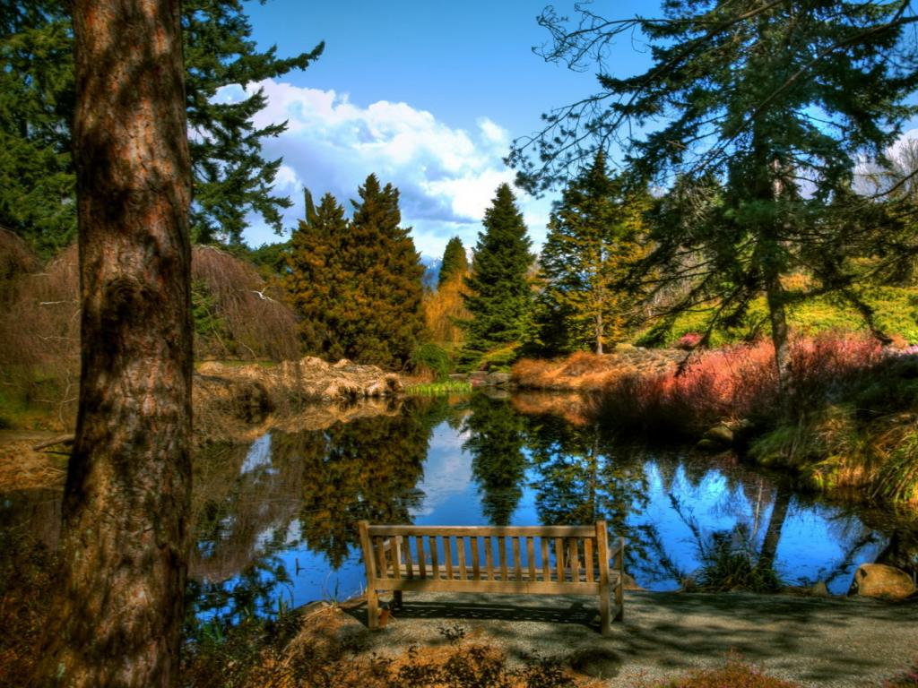 Парк, скамья, озеро, небо обои для рабочего стола, картинки, фото, 1024x768. | ||||||||||||||||