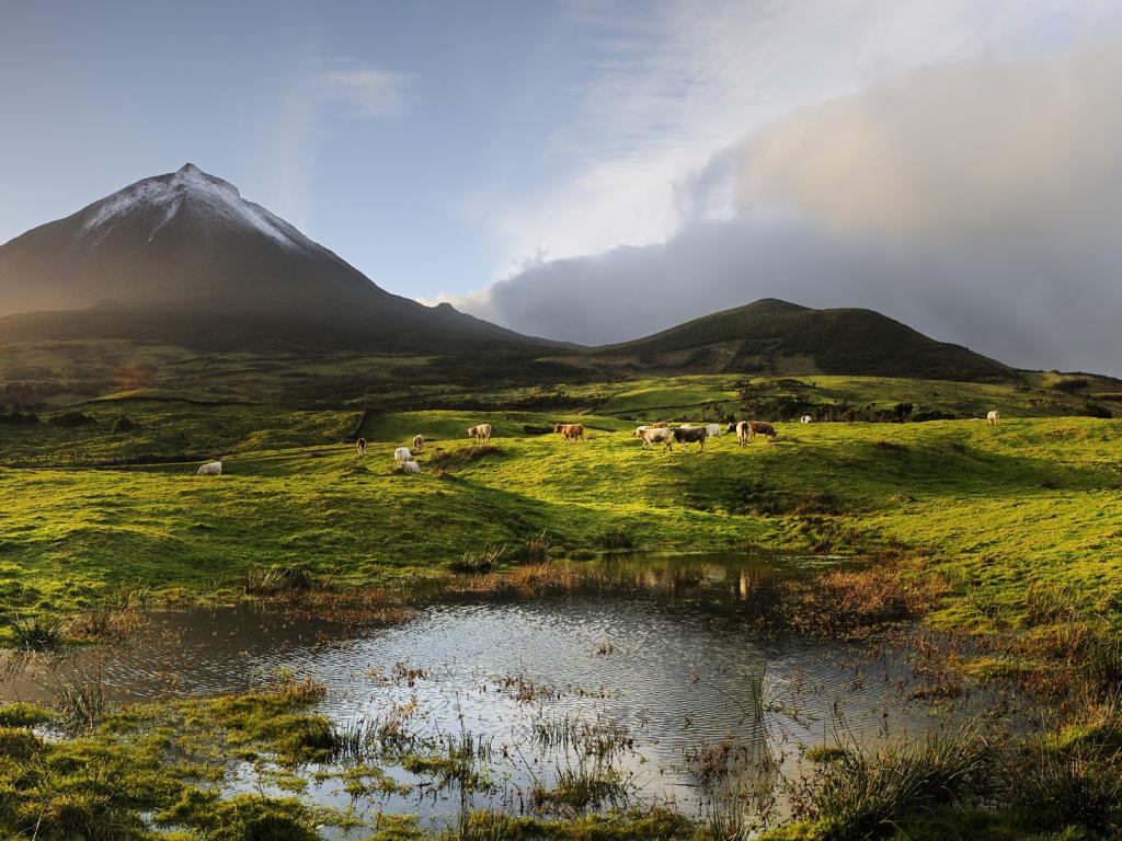 Коровы пасущиеся на зеленых лугах предгорья обои для рабочего стола, картинки, фото, 1024x768. | ||||||||||||||||