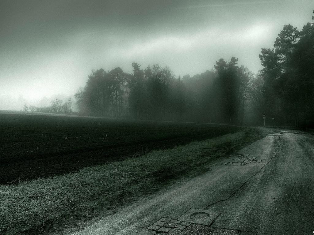Туман, дорога, зелень, дереья, мрачно обои для рабочего стола, картинки, фото, 1024x768. | ||||||||||||||||