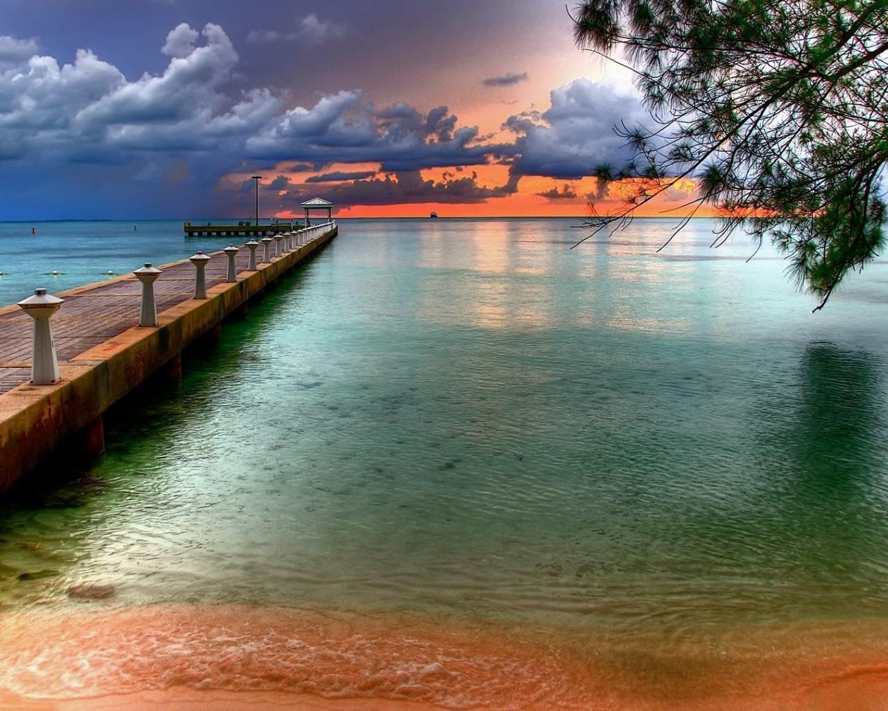 Океан, песок, причал, штиль, горизонт, облака, небо обои для рабочего стола, картинки, фото, 1280x1024. | ||||||||||||||||||||||