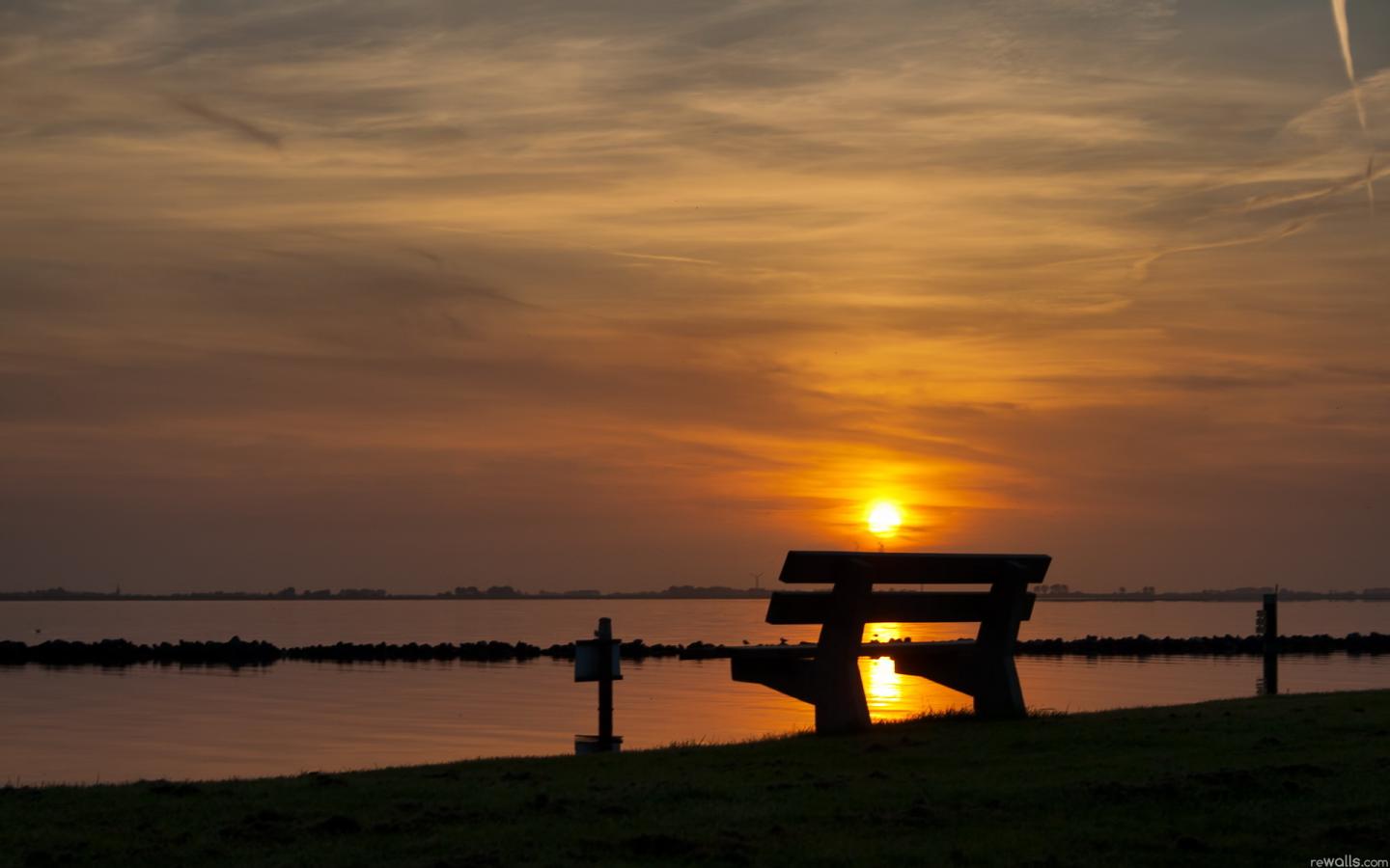 Закат, небо, скамья обои для рабочего стола, картинки, фото, 1440x900. | ||||||||||||||||