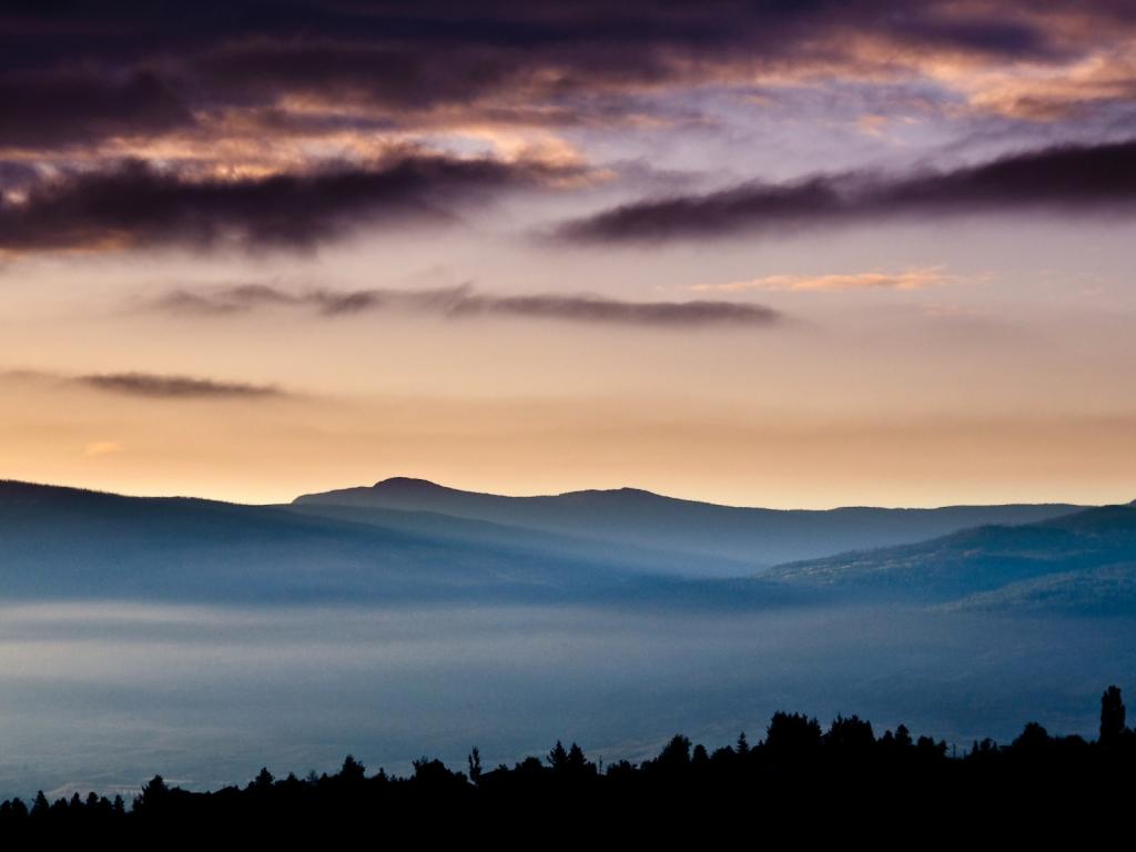 Вечер, вид, лес, горы, дымка обои для рабочего стола, картинки, фото, 1024x768. | ||||||||||||||||