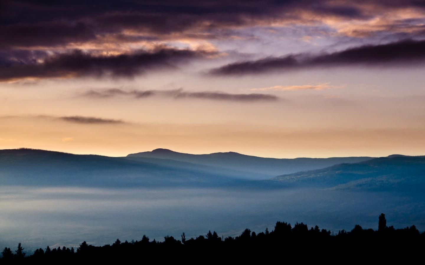 Вечер, вид, лес, горы, дымка обои для рабочего стола, картинки, фото, 1440x900. | ||||||||||||||||