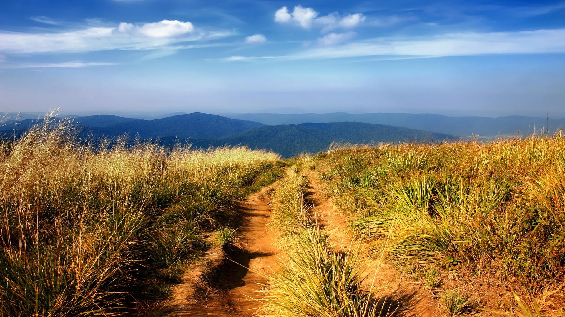 Горная тропа через поле обои для рабочего стола, картинки, фото, 1920x1080. | ||||||||||||||||