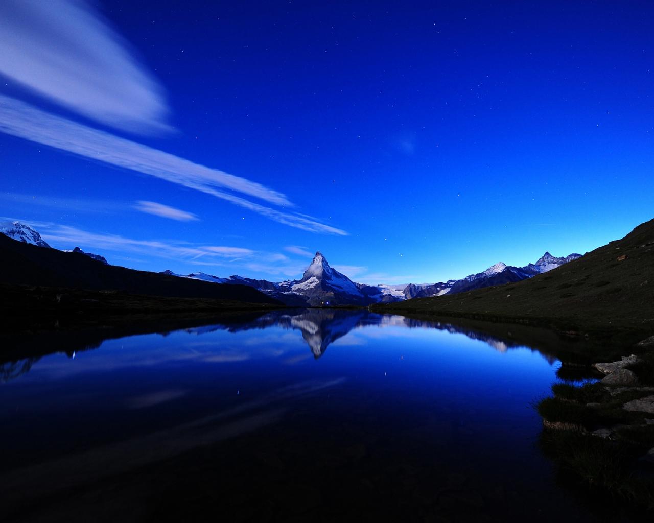 Пейзаж, горы, небо, облака, небеса, вершины, скалы, берег, камни, вода, река, озеро, отблеск, отраже обои для рабочего стола, картинки, фото, 1280x1024. | ||||||||||||||||