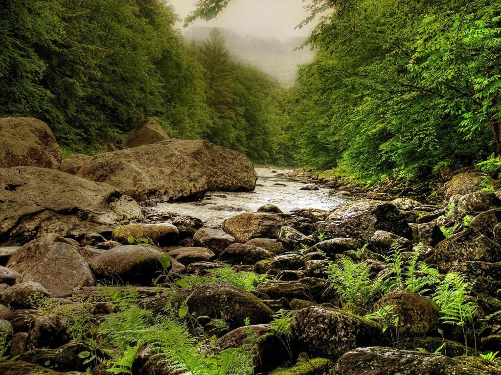 Камни, речка, деревья обои для рабочего стола, картинки, фото, 1024x768. | ||||||||||||||||