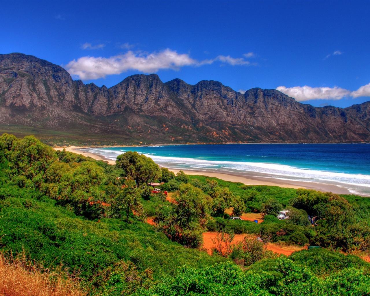 Море, горы, трава, пена, небо, облака, фургон белый, палка-капалка, и ещё один белый фургончик, песо обои для рабочего стола, картинки, фото, 1280x1024. | ||||||||||||||||||||||