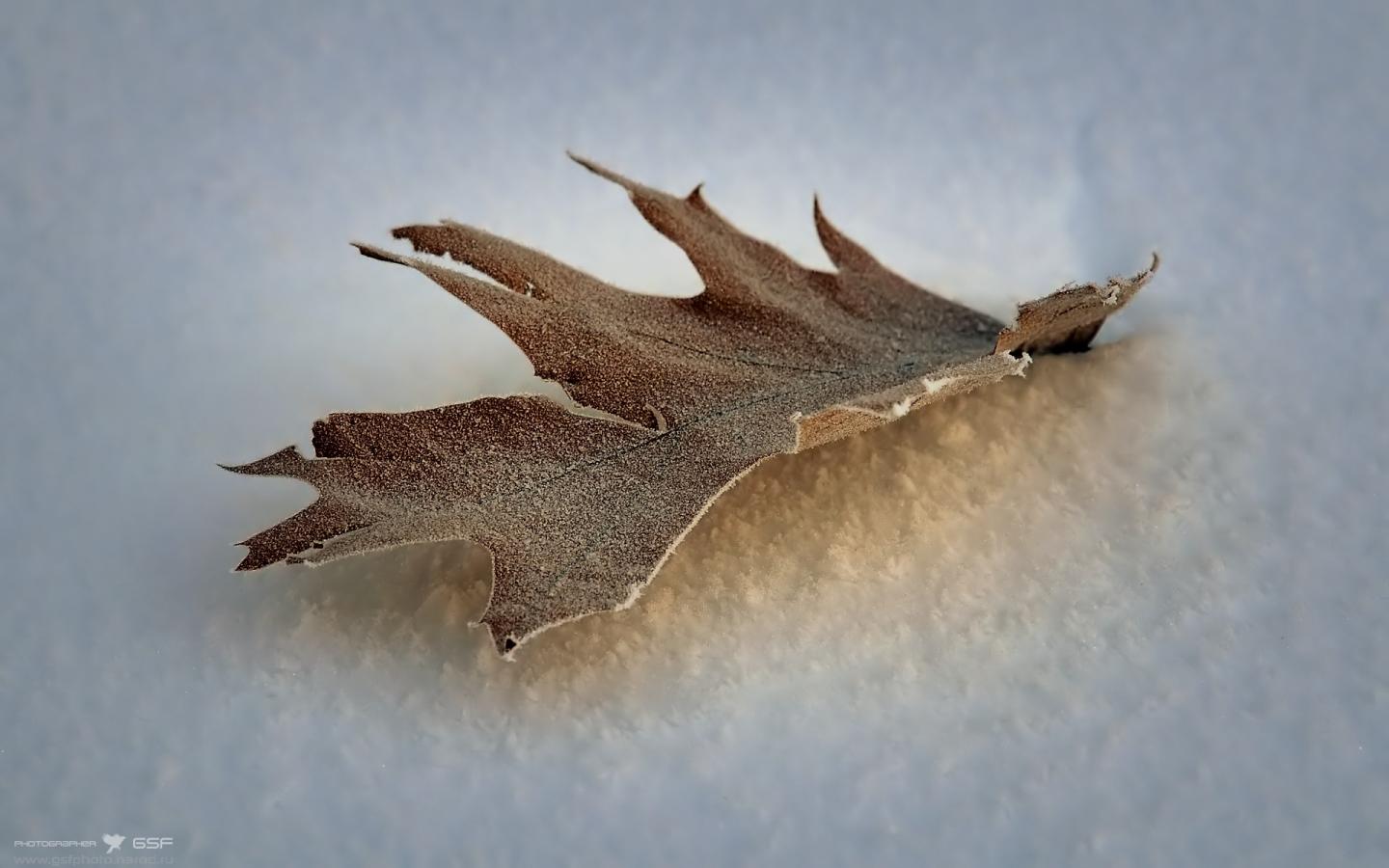 Зима, снег, листок обои для рабочего стола, картинки, фото, 1440x900. | ||||||||||||||||
