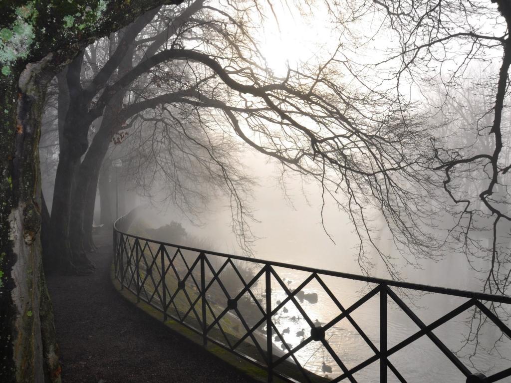 Деревья, ветви, туман, река, дорога, лес, природа обои для рабочего стола, картинки, фото, 1024x768. | ||||||||||||||||