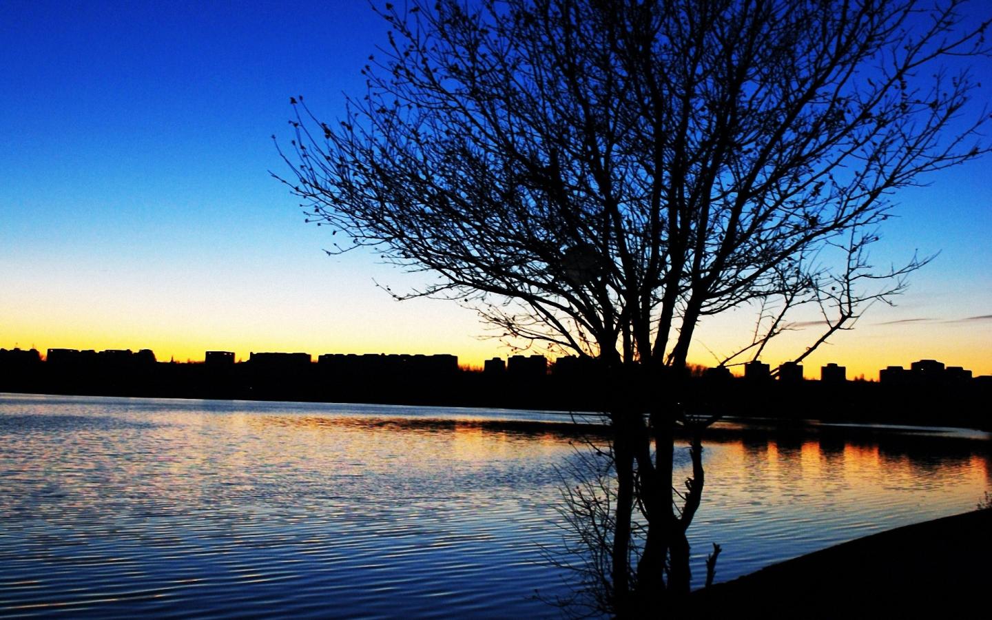 Ночь, город, деревце обои для рабочего стола, картинки, фото, 1440x900. | ||||||||||||||||