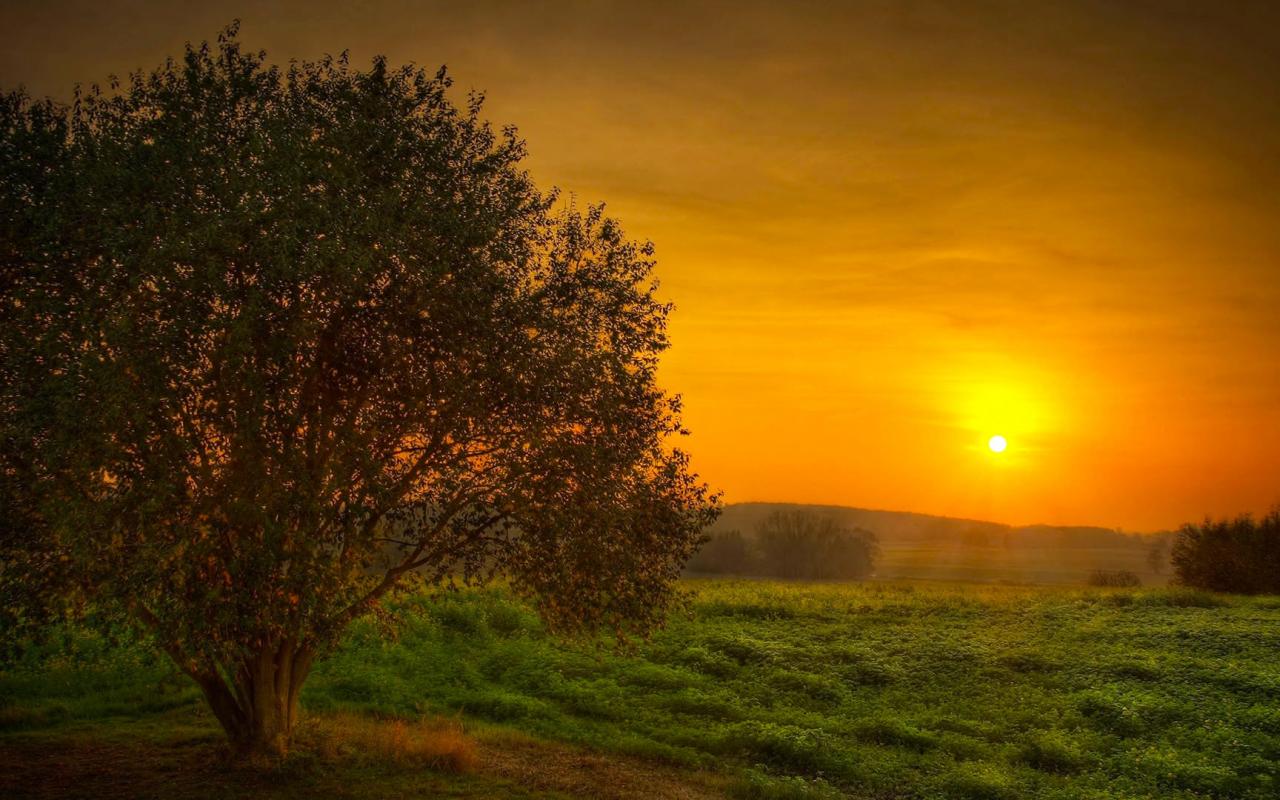 Закат, поле, дерево, небо, солнце, красота обои для рабочего стола, картинки, фото, 1280x800. | ||||||||||||||||