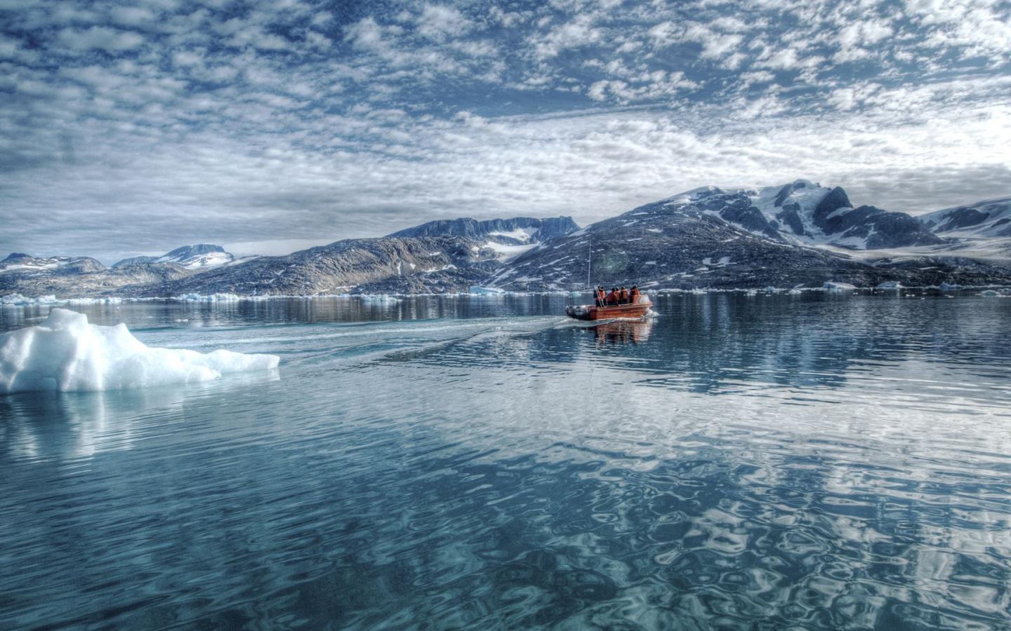 На лодке между льдин обои для рабочего стола, картинки, фото, 1440x900. | ||||||||||||||||