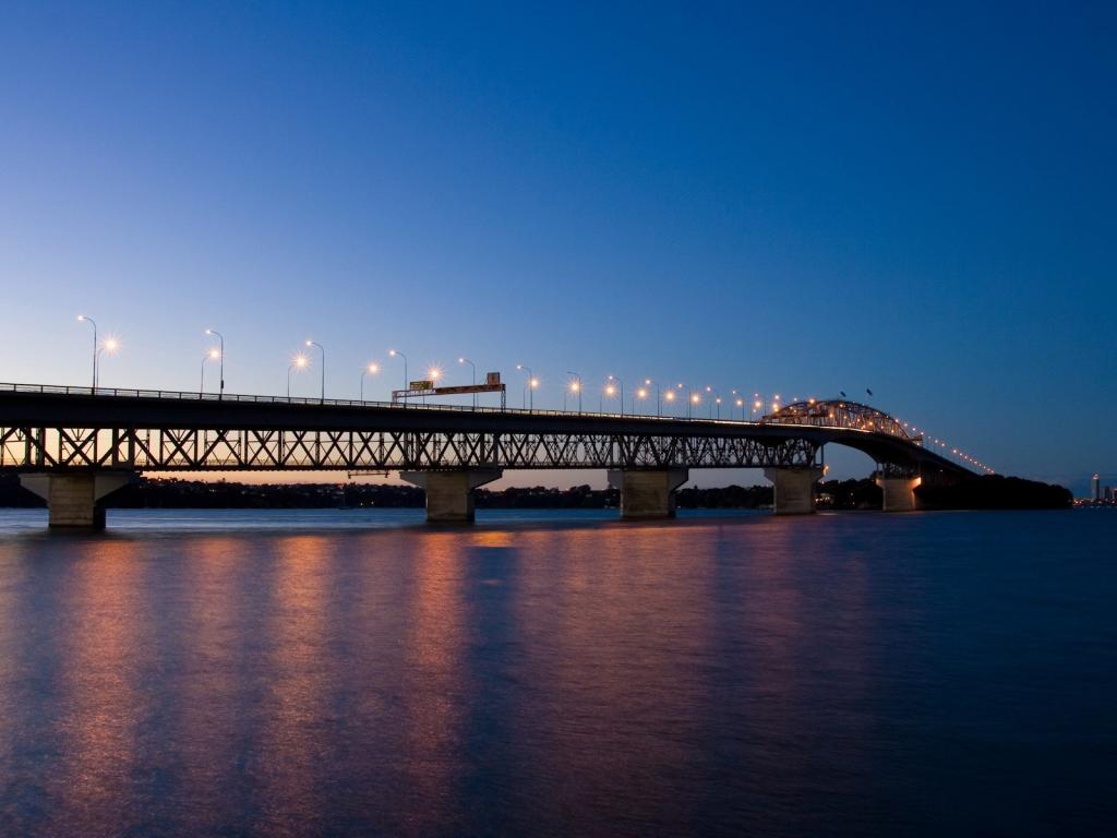 Мост, вечер, огни обои для рабочего стола, картинки, фото, 1024x768. | ||||||||||||||||