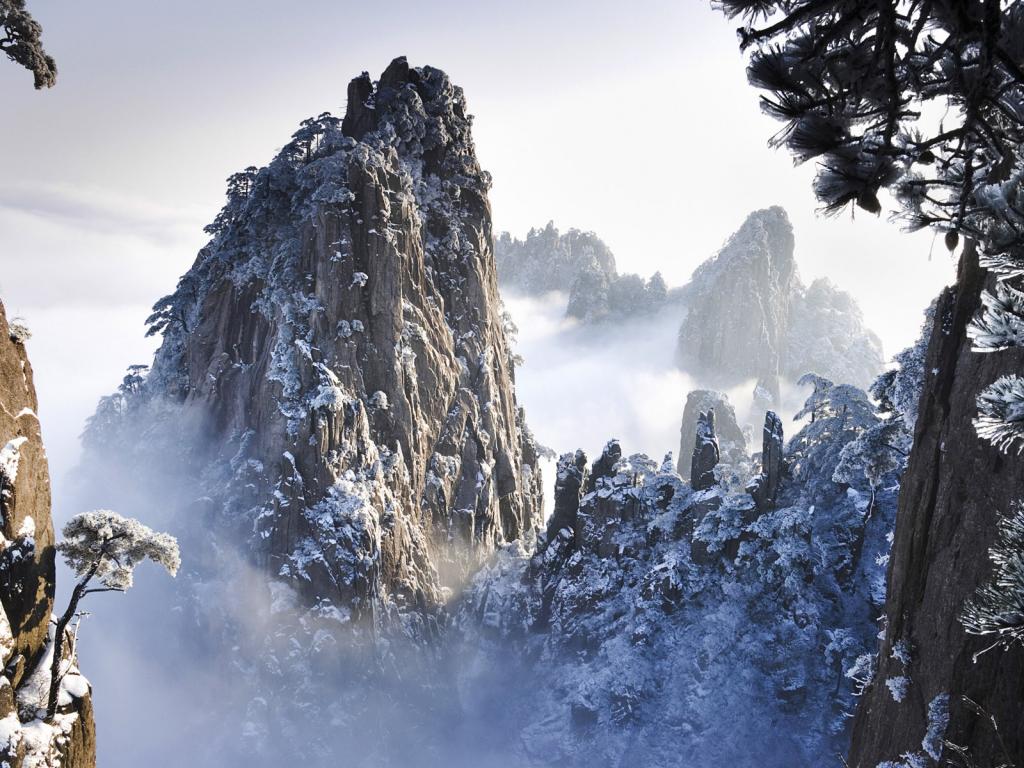Скалы под снегом обои для рабочего стола, картинки, фото, 1024x768. | ||||||||||||||||