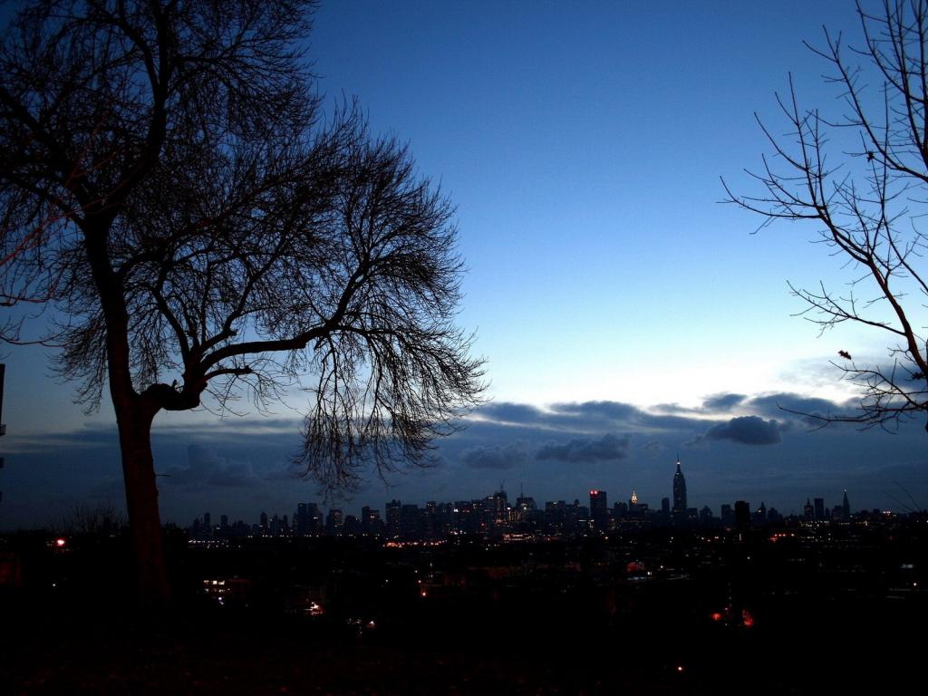 Деревья, город, вид, вечер обои для рабочего стола, картинки, фото, 1024x768. | ||||||||||||||||