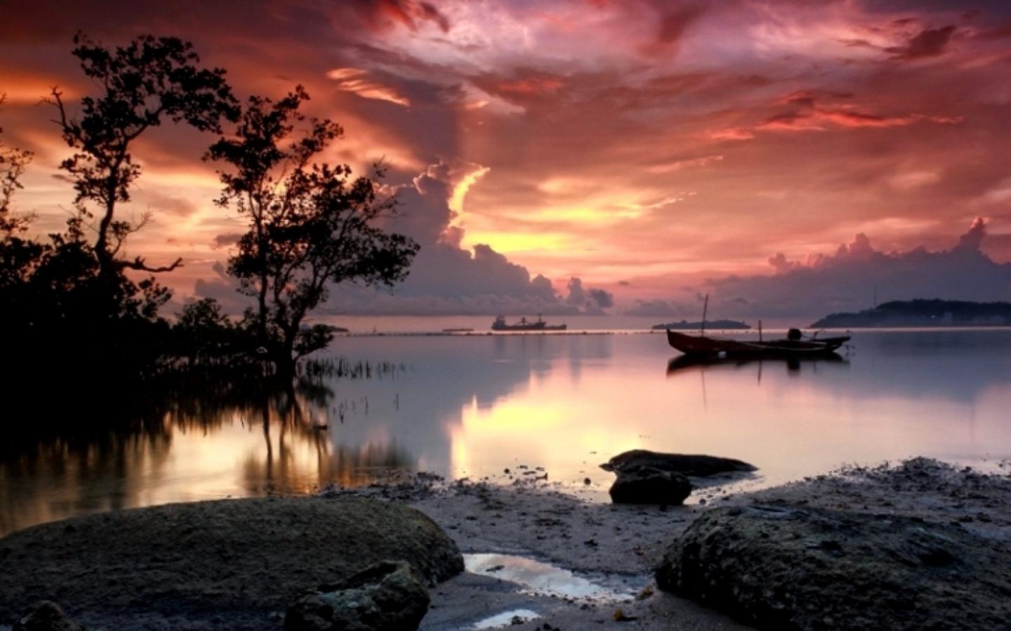 Природа, закат, вода, лодки обои для рабочего стола, картинки, фото, 1440x900. | ||||||||||||||||