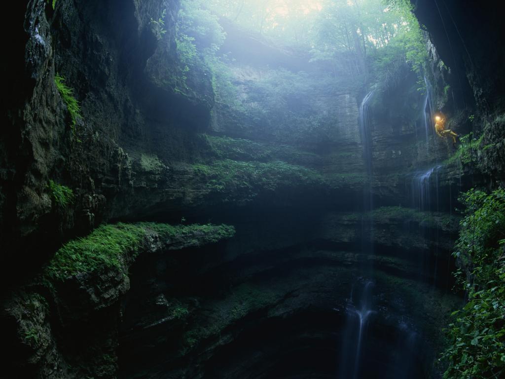 Пейзаж, природа, ущелье, пещера, спуск, свет, водопад обои для рабочего стола, картинки, фото, 1024x768. | ||||||||||||||||