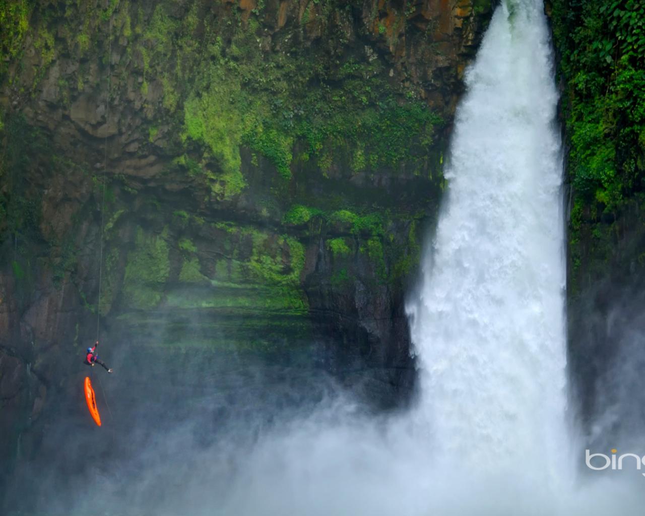 Водопад, скалы, каноэ, человек обои для рабочего стола, картинки, фото, 1280x1024. | ||||||||||||||||