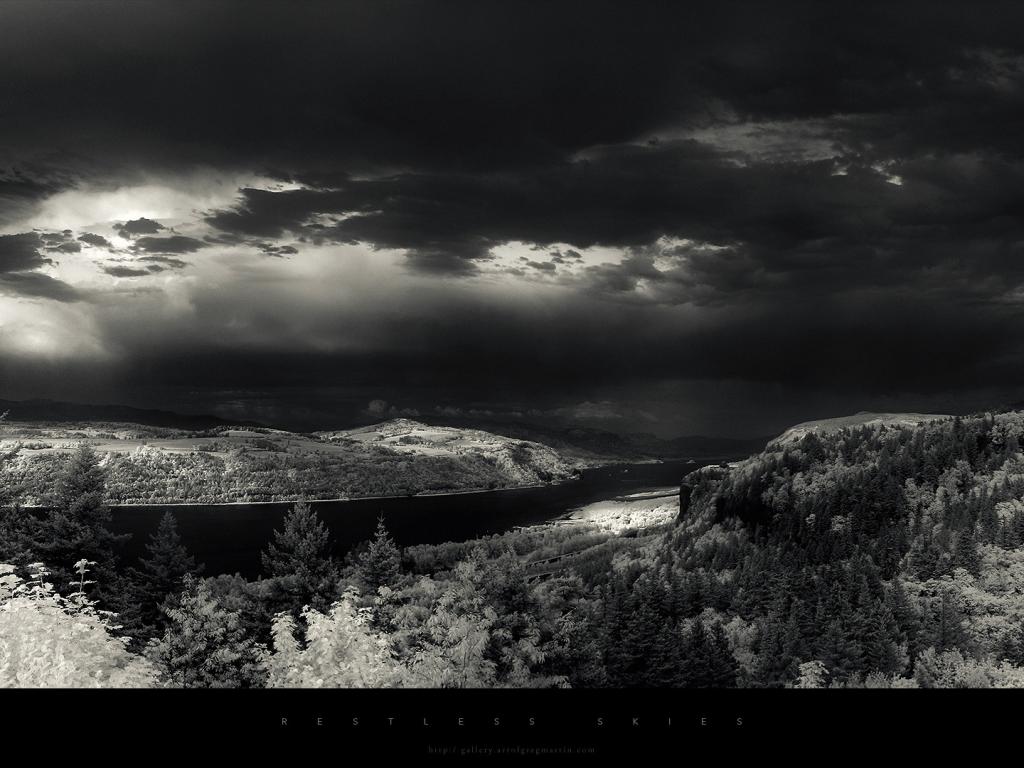 Темное, Greg Martin, атр, небо, свет, лучи, река, деревья обои для рабочего стола, картинки, фото, 1024x768. | ||||||||||||||||||||||