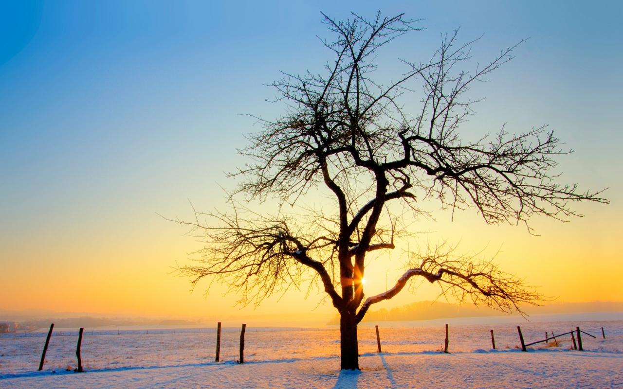 Зима, дерево, снег, закат обои для рабочего стола, картинки, фото, 1280x800. | ||||||||||||||||