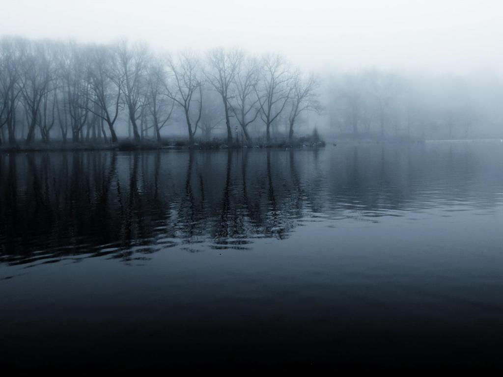 Река, берег, лес, утро, туман, прохлада, чёрно-белое обои для рабочего стола, картинки, фото, 1024x768. | ||||||||||||||||||||||
