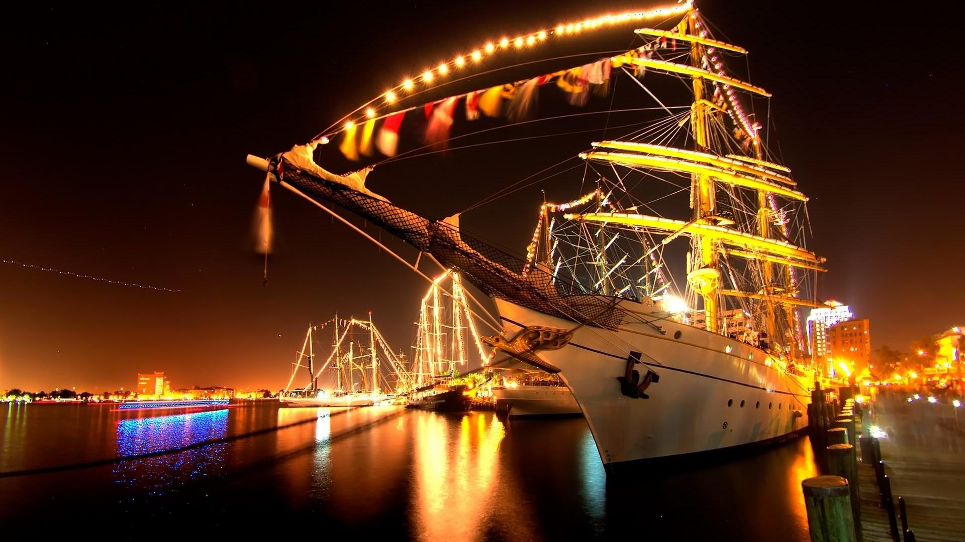 Освещенная яхта обои для рабочего стола, картинки, фото, 1920x1080. | ||||||||||||||