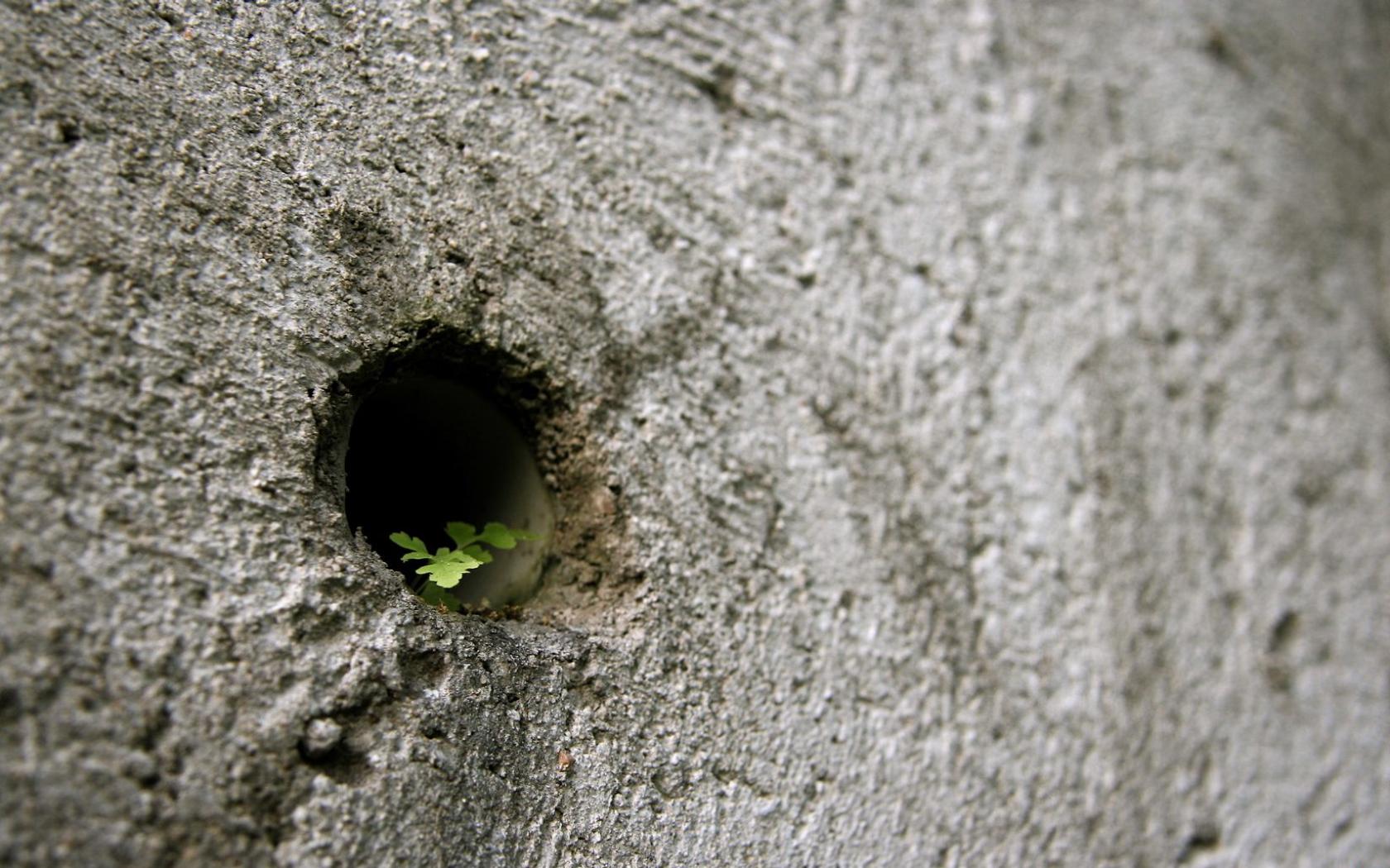 Растение в дырке обои для рабочего стола, картинки, фото, 1680x1050. | ||||||||||||||||