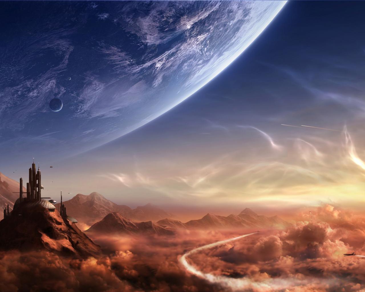 Планеты, самолёт, горы обои для рабочего стола, картинки, фото, 1280x1024. | ||||||||||||||||