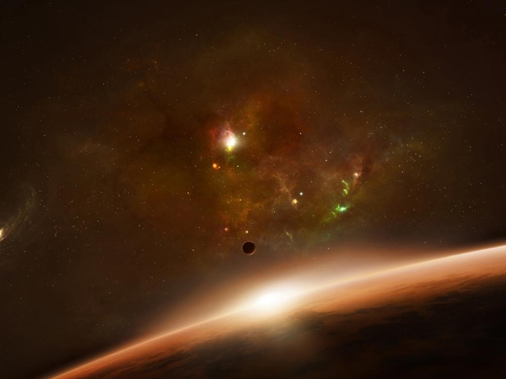Красная, планета, горизонт, туманность, галактика обои для рабочего стола, картинки, фото, 1024x768. | ||||||||||||||||||||||