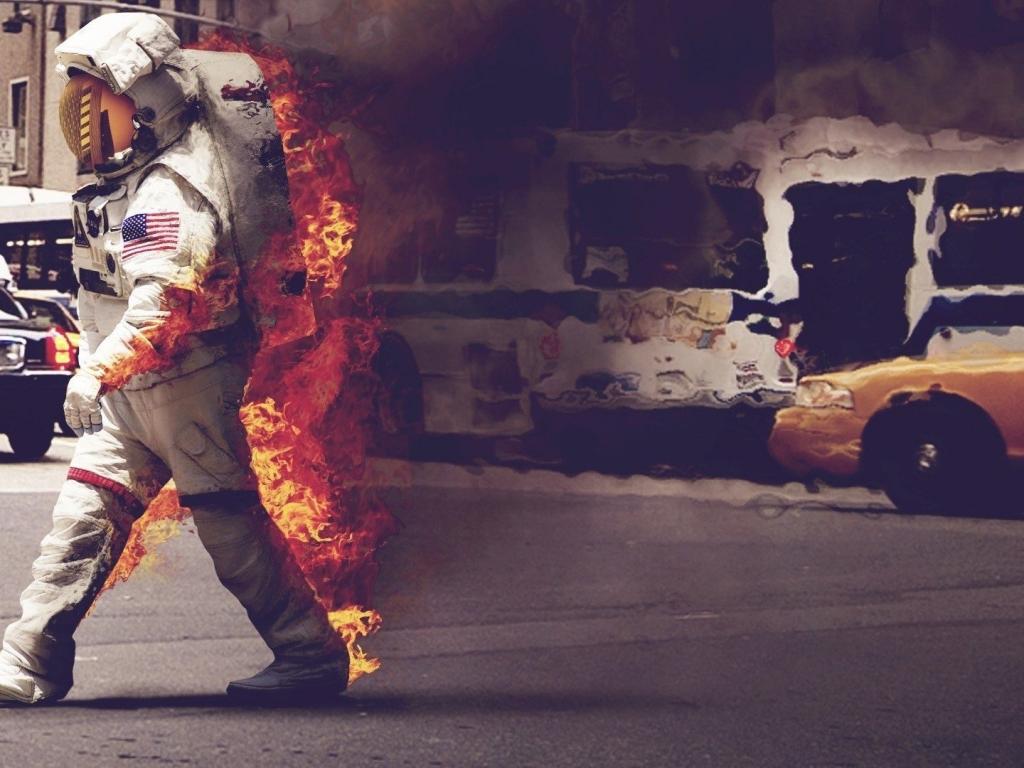 Астронавт, огонь, горит обои для рабочего стола, картинки, фото, 1024x768. | ||||||||||||||||
