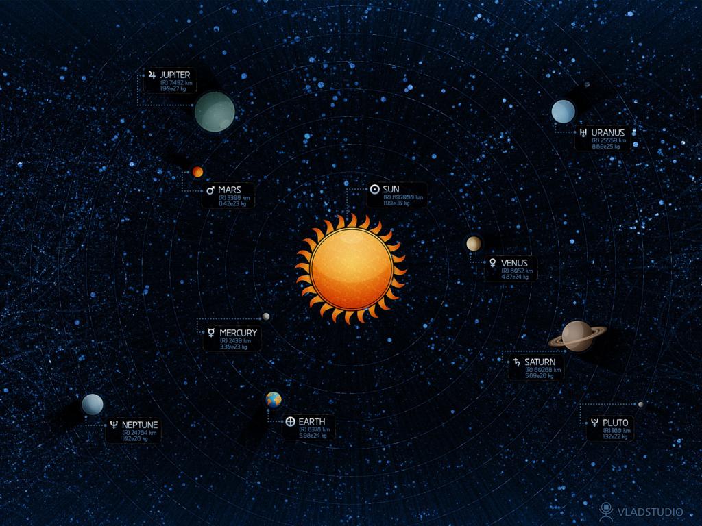 Схема солнечной системы - скачать обои для рабочего стола, картинки, фото, 1024x768. | ||||||||||||||||