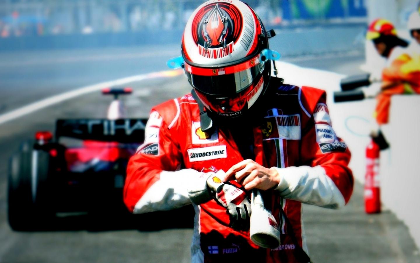 Гонщик формулы 1 после заезда обои для рабочего стола, картинки, фото, 1440x900. | ||||||||||||||||