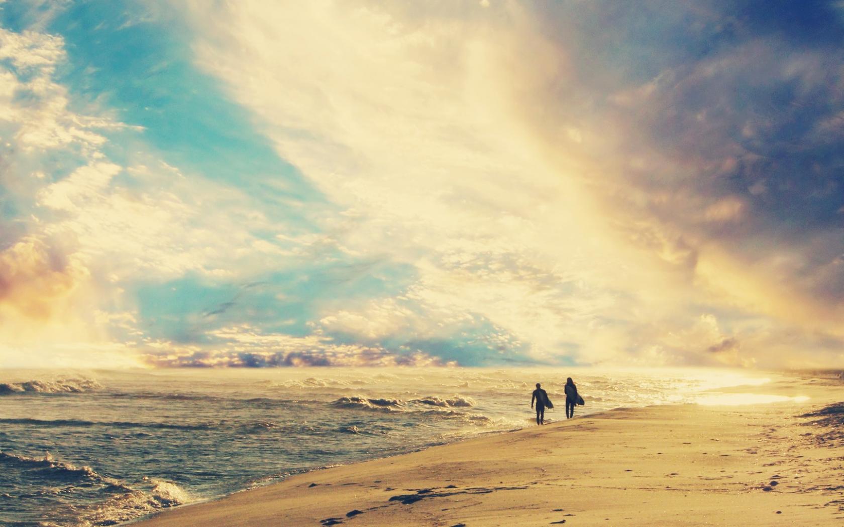 Парочка серфингистов на побережье, романтическая тема обои для рабочего стола, картинки, фото, 1680x1050. | ||||||||||||||||