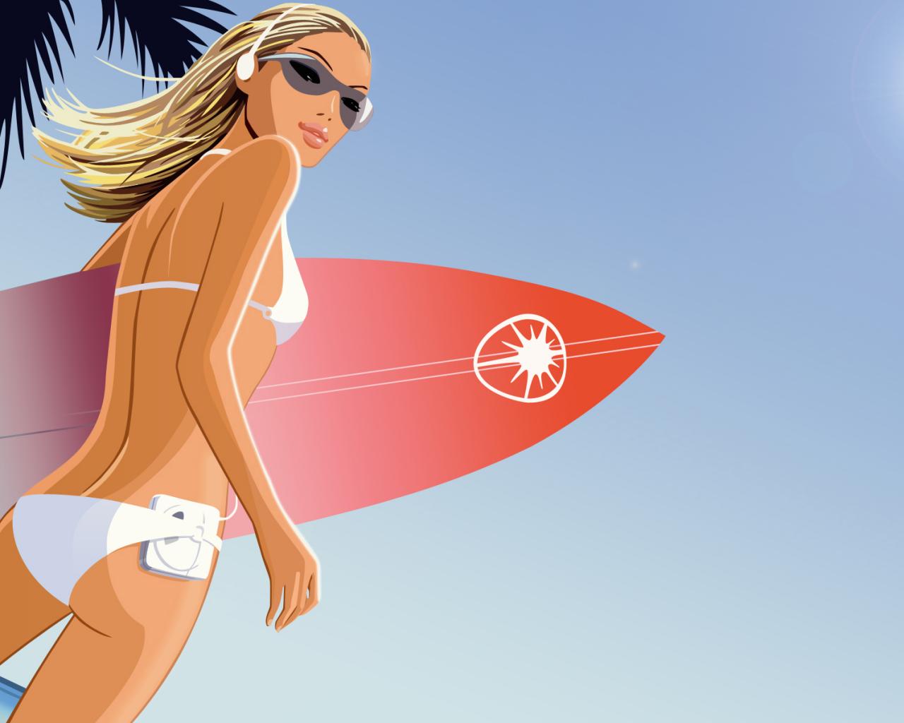 Девушка серфингист обои для рабочего стола, картинки, фото, 1280x1024. | ||||||||||||||||