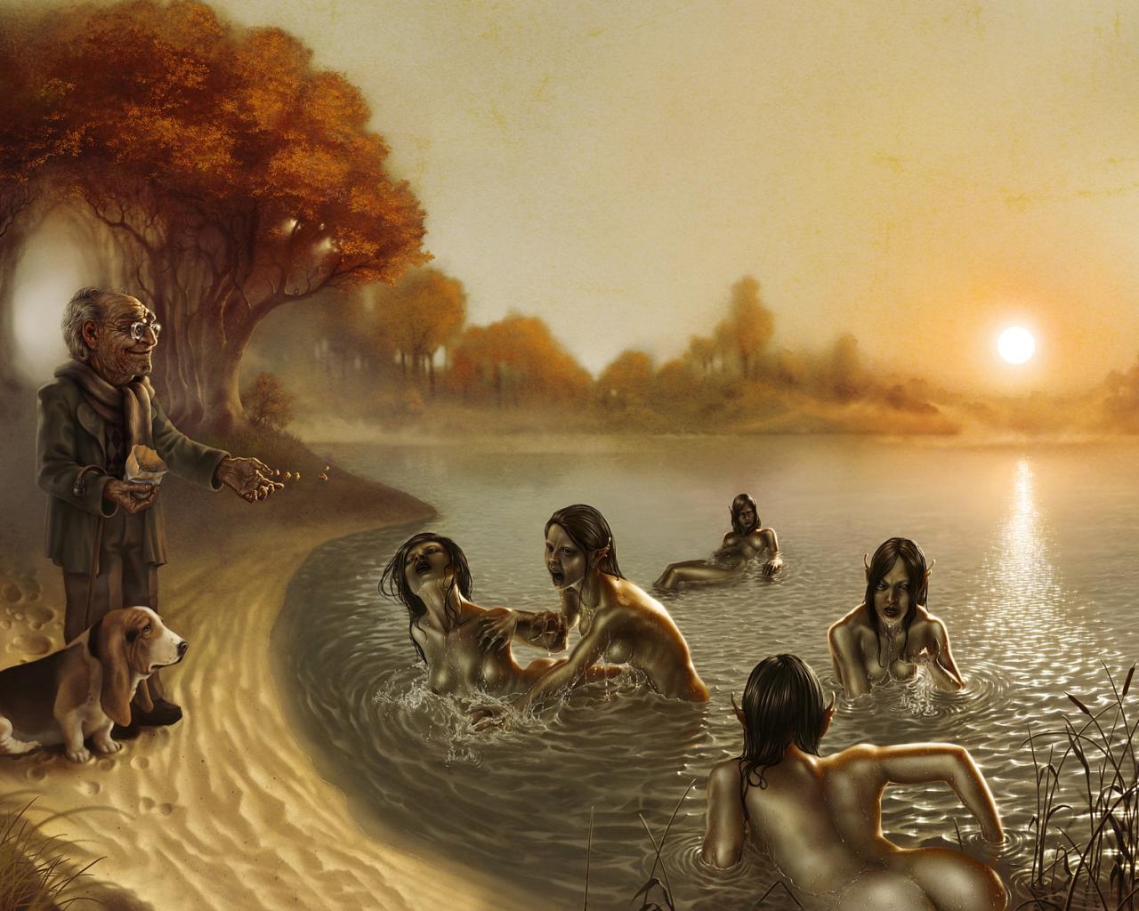 Дедушка прикармливает плавунов обои для рабочего стола, картинки, фото, 1280x1024. | |||||||||||||||||||||||