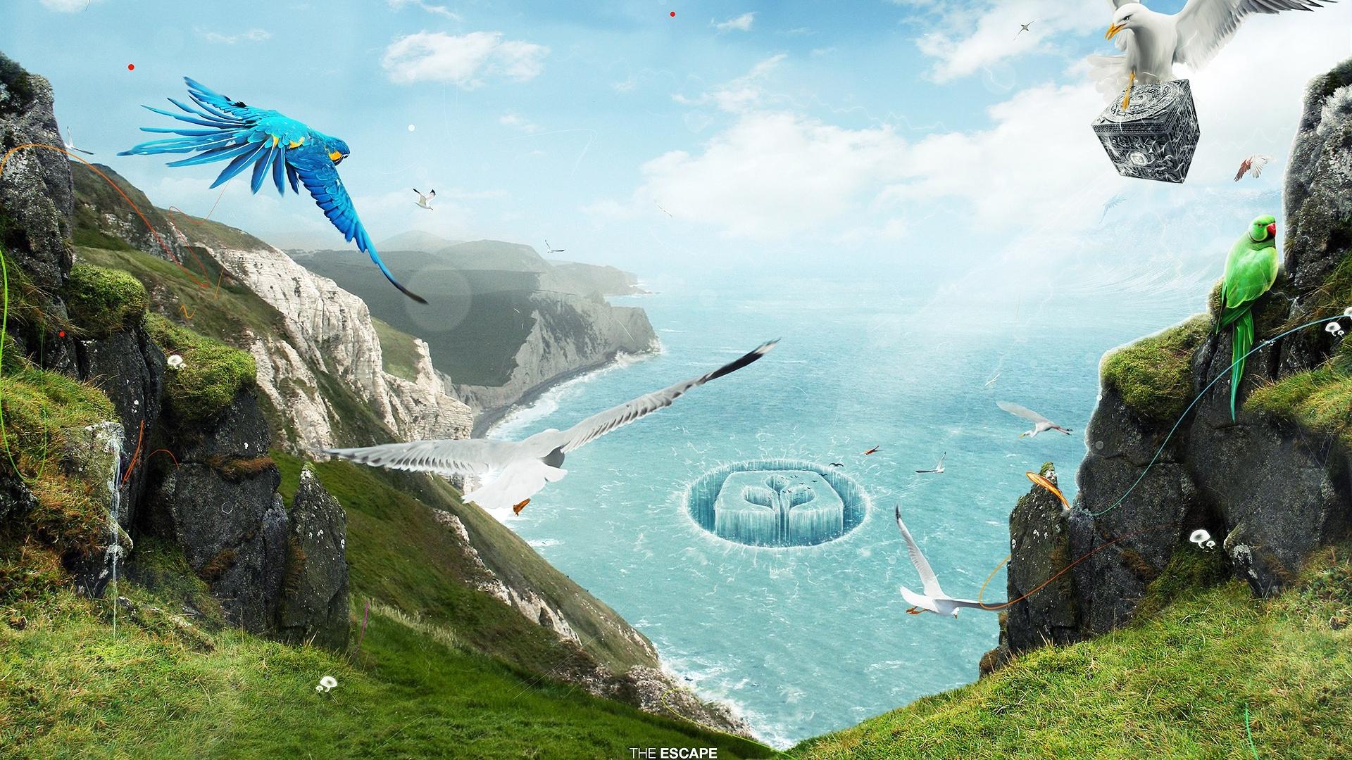 Невероятный залив с птицами обои для рабочего стола, картинки, фото, 1920x1080. | |||||||||||||||||||||||