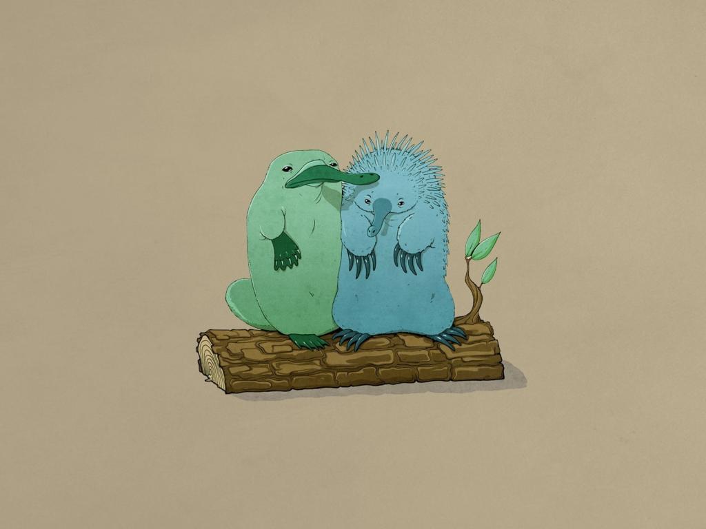 Ехидна и утконос обои для рабочего стола, картинки, фото, 1024x768. | ||||||||||||||