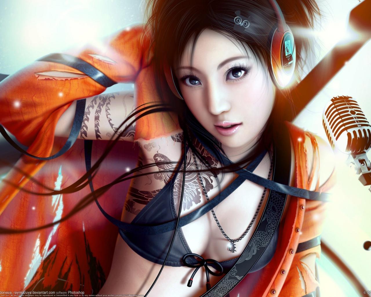 Японка, микрофон, наушники обои для рабочего стола, картинки, фото, 1280x1024. | |||||||||||||||||