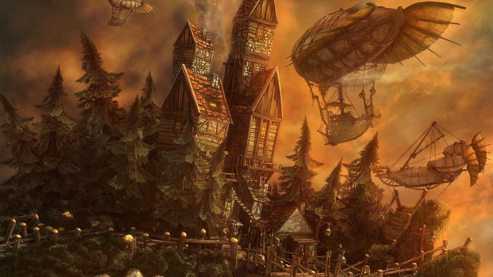 Замок, дирижабли обои для рабочего стола, картинки, фото, 1920x1080. | ||||||||||||||