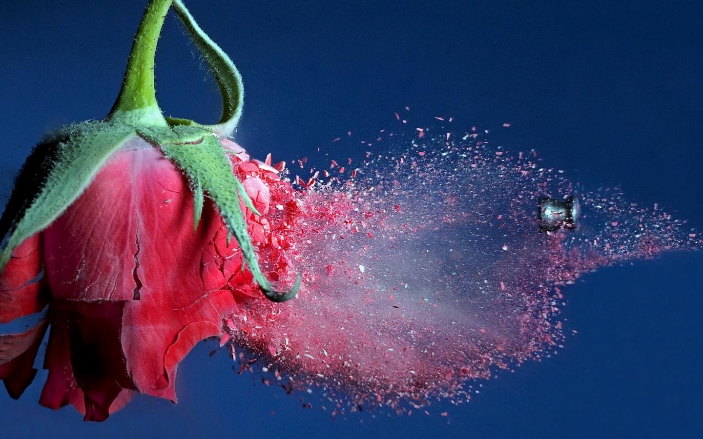 Пуля пробила розу обои для рабочего стола, картинки, фото, 1440x900. | ||||||||||||||||