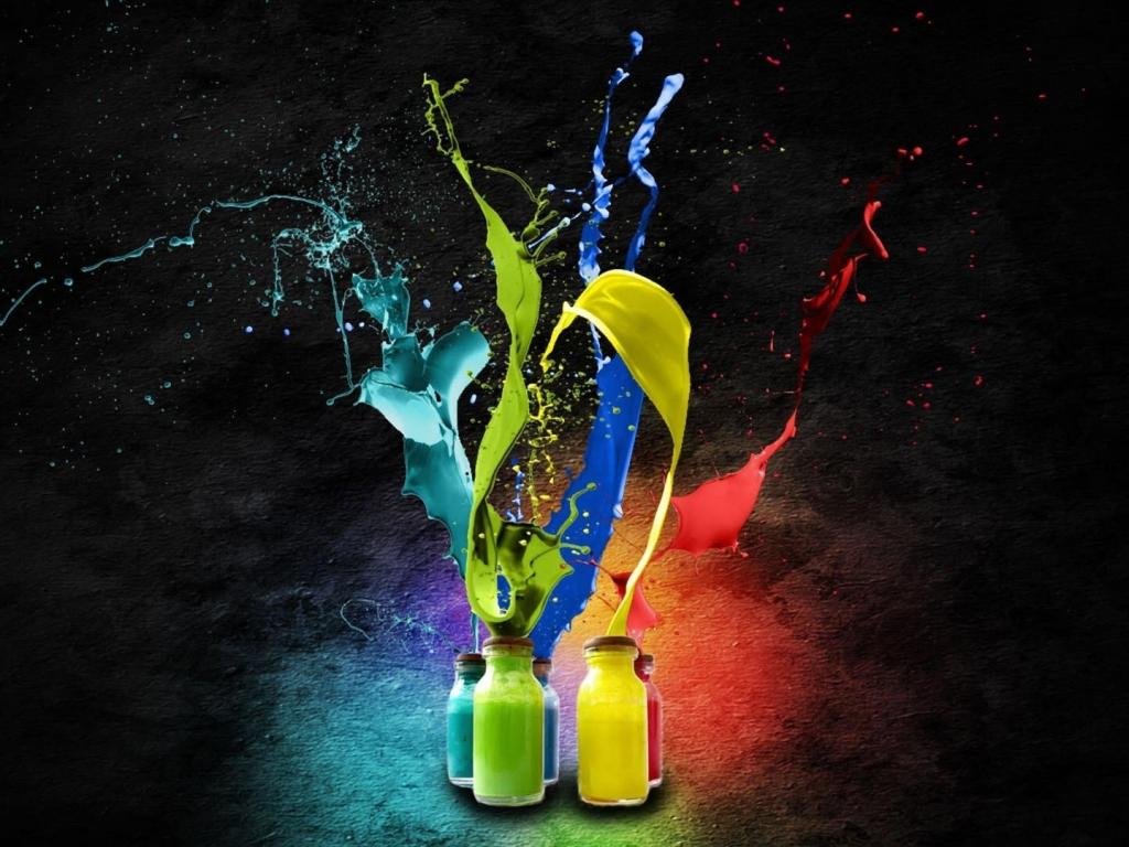 Краски, бутылки обои для рабочего стола, картинки, фото, 1024x768. | ||||||||||||||