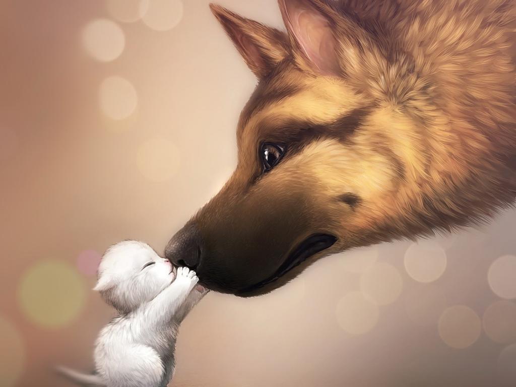 Овчарка и котенок обои для рабочего стола, картинки, фото, 1024x768. | |||||||||||||||||