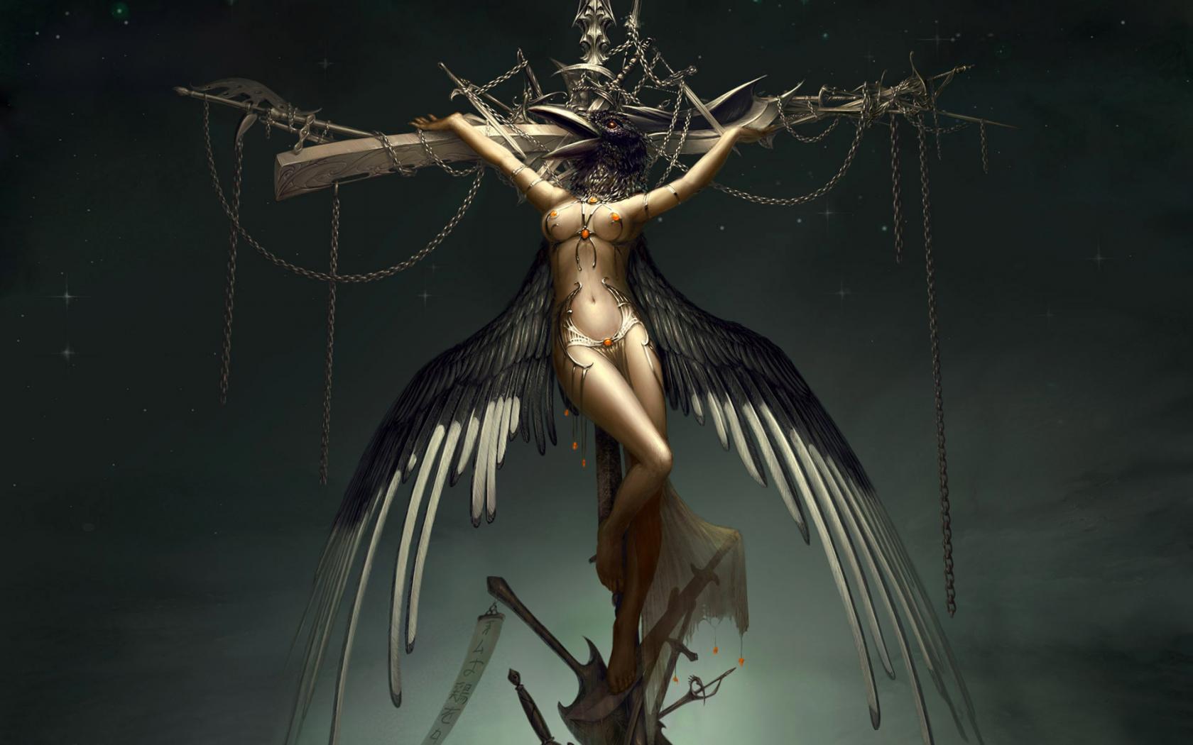 Распятие, крылья, птца, девушка обои для рабочего стола, картинки, фото, 1680x1050. | ||||||||||||||||