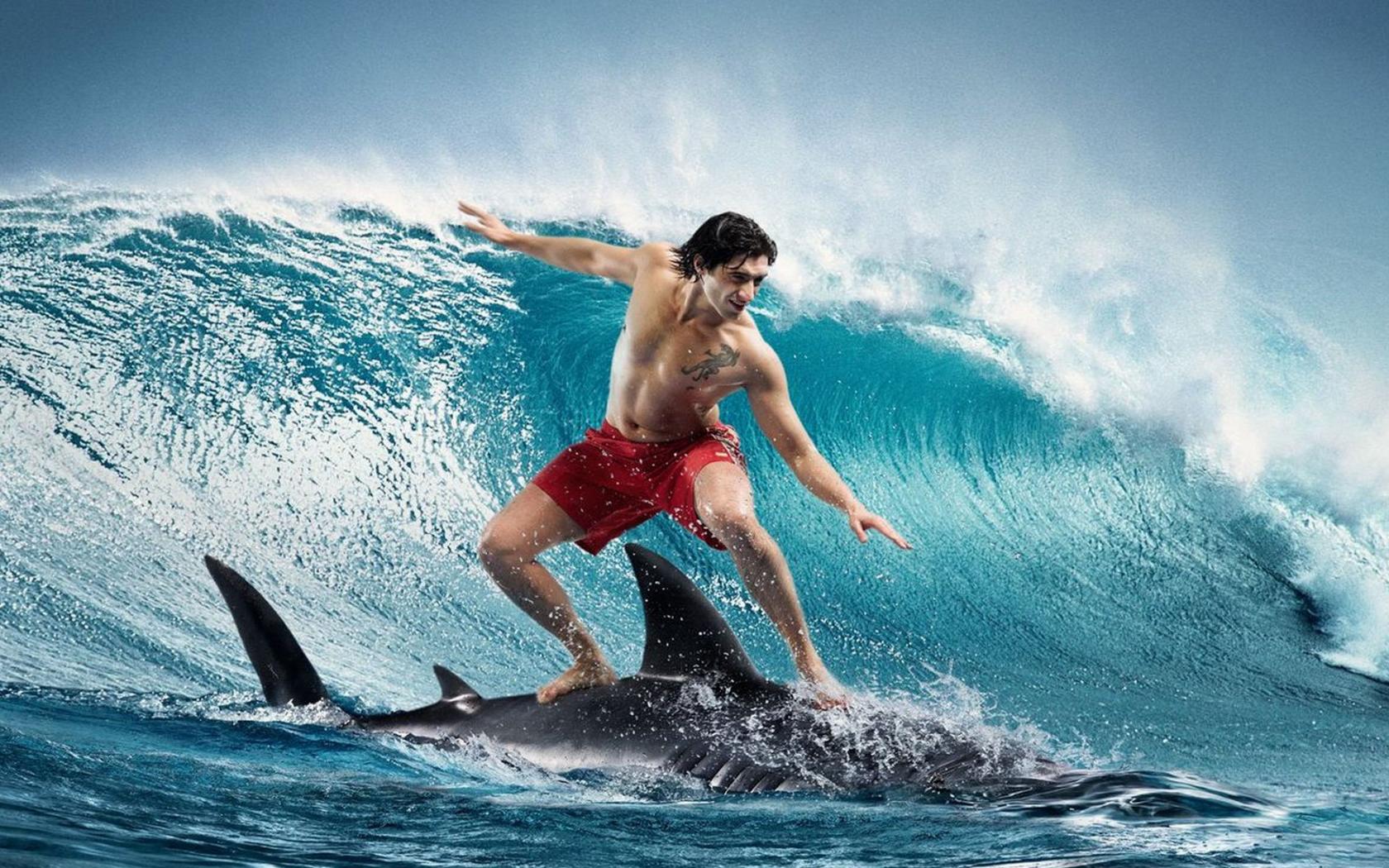 Серфинг на акуле обои для рабочего стола, картинки, фото, 1680x1050. | ||||||||||||||