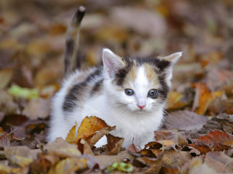 Котенок в осенних листьях обои для рабочего стола, картинки, фото, 800x600. | ||||||||||||||||
