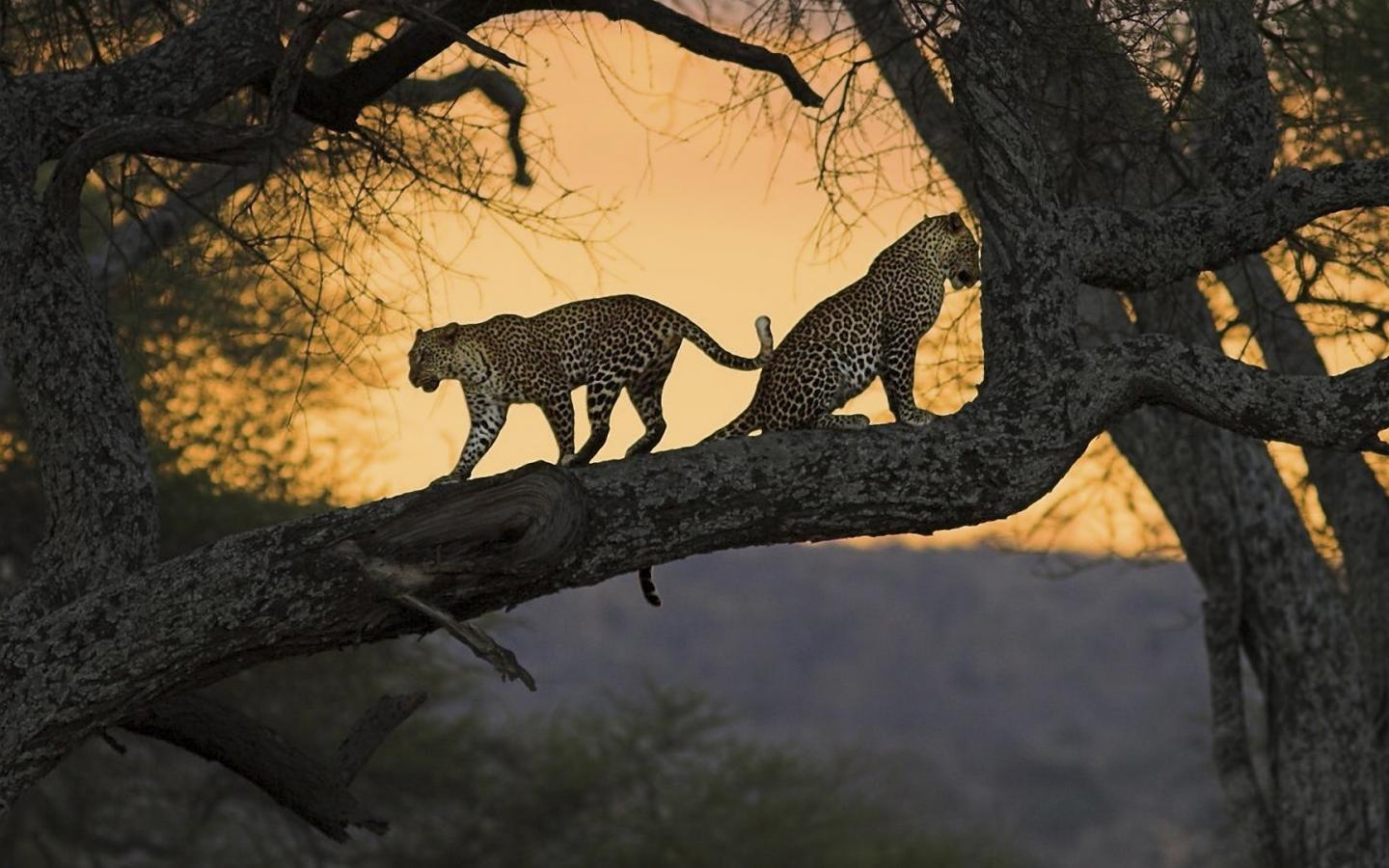 Леопарды на толстых ветвях дерева обои для рабочего стола, картинки, фото, 1440x900. | ||||||||||||||||||||||