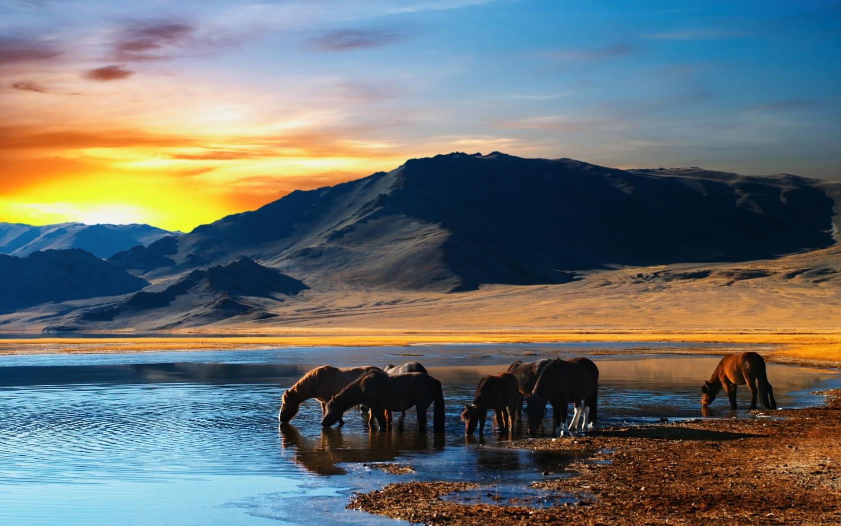 Дикие лошади у озера обои для рабочего стола, картинки, фото, 1680x1050. | ||||||||||||||||||||||