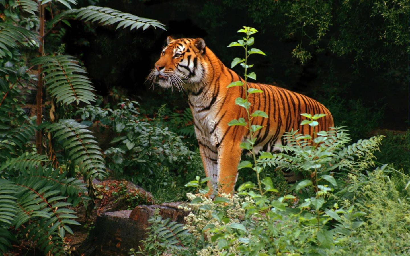 Тигр в лесу обои для рабочего стола, картинки, фото, 1440x900. | ||||||||||||||||
