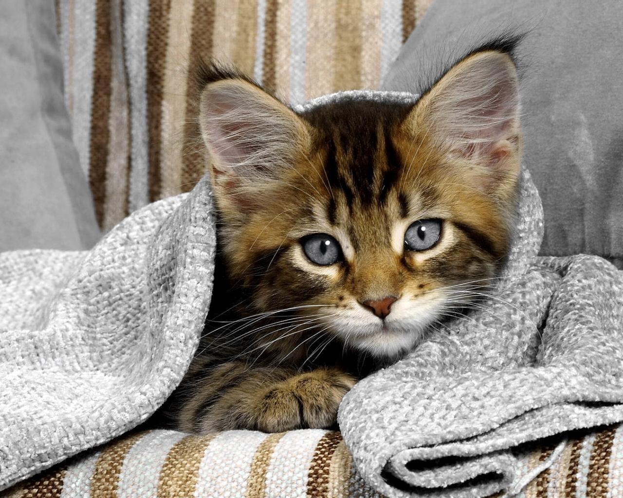 Котенок под пледом обои для рабочего стола, картинки, фото, 1280x1024. | ||||||||||||||||