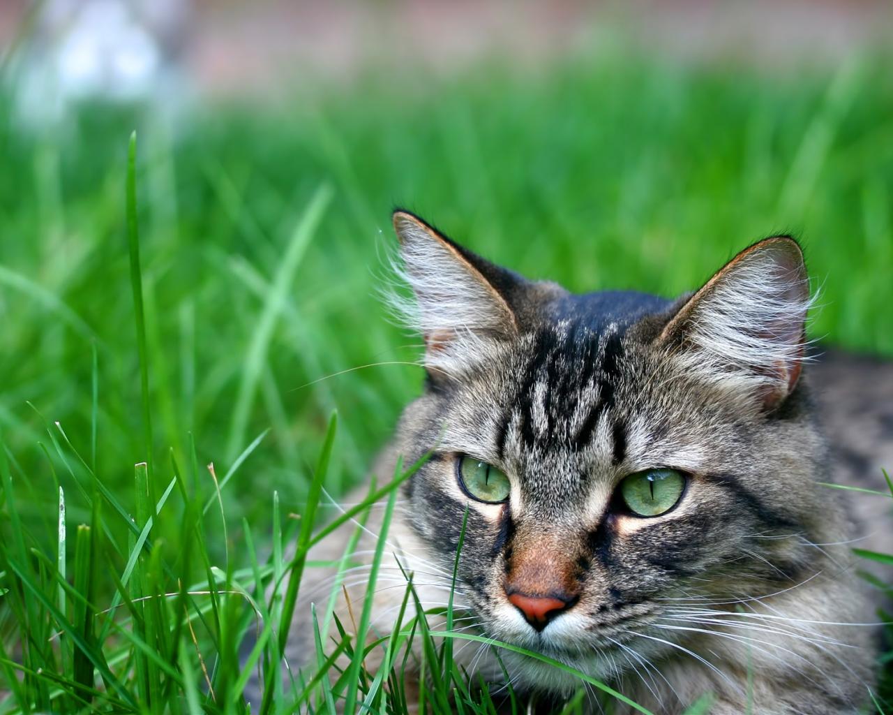 Серый кот в траве обои для рабочего стола, картинки, фото, 1280x1024. | ||||||||||||||||